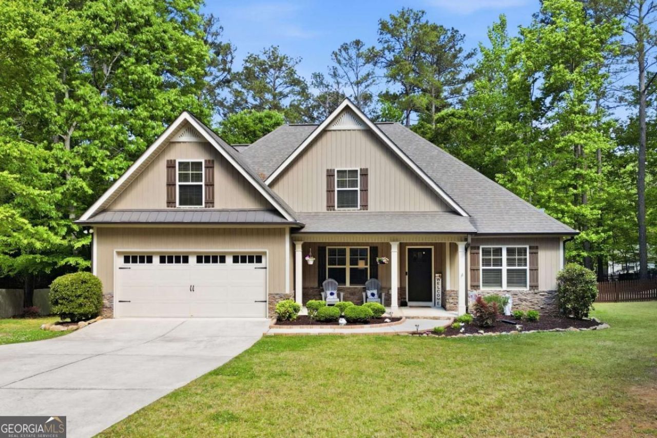 Your dream home with resort-style amenities awaits! Built in 2015, this beauty has been lovingly cared for. Before you pull in the driveway, look right and catch a gorgeous view of the manicured golf course. Then, check out the curb appeal of your new front yard, with its level sod and extended driveway-there's room for plenty of visitors and your boat, too! Entering the foyer, you'll see wide-paneled hand-scraped hardwood floors that give a warm, luxurious feel. On your right is a formal dining room with a double trey ceiling and access to the kitchen via the butler's pantry-an excellent spot for a minibar or coffee station, with beautiful glass-paneled cabinetry above and storage below. On the left of the foyer is a multipurpose room with attractive pocket doors. While currently serving as a libation station, this room has a myriad of potential uses...formal living, office or guest suite-there is access to a full bath in the rear hallway. Head further to enter the vaulted family room, which is separated from the kitchen by an enormous island with bar top that seats 4 comfortably. The family room is roomy enough for a cozy sectional, perfect for snuggling up in front of the stone-surround fireplace. The spacious kitchen has room for several chefs at once-perfect for holiday gatherings. The farmhouse-style apron-front sink, gleaming granite counters, stainless steel appliances and on-trend tiled backsplash provide a gorgeous backdrop. The walk-in pantry offers ample food/kitchen gadget storage, in addition to the generously-sized cabinets. Additional dining space is afforded beyond the kitchen, overlooking the sunny back yard. As you move toward the primary suite, notice the upgraded lighting and wrought-iron railing along the hardwood stairs, carrying a custom feel through the home. The opulent primary suite offers a space for you to unwind after a long day. You'll appreciate the handsome upgrades such as double trey ceiling and upgraded ceiling fan with breeze mode that will transport you to the tropics. Bring your candles to stage your spa-like bathroom with a massive soaking tub! A separate shower, water closet, and double-sink vanity with a granite countertop round out this space. Off the primary suite is a hallway leading to the laundry room, 2nd main level full bathroom, and access to the garage which has insulated garage doors. Upstairs are three bountiful bedrooms with ample closet space and a 3rd full bathroom. This summer, you'll have gladiolas, hydrangeas, knock-out roses and a magnolia tree provide a scenic setting as you relax on the front porch with a glass of lemonade, while the tiny humans and fur babies burn out their energy in the HUGE, LEVEL fenced-in back yard! After bedtime, you and your partner can sneak out for a long-awaited soak in the 7-seater spa hot tub off the back porch. On weekend mornings, get your yard work done early, then store your yard tools in your 10' x 16' storage building and enjoy the rest of the day at the amazing amenities of Fairfield Plantation. You can launch your boat at the Marina, to go fishing or water-skiing, and then dine alfresco at The Dockside Marina. Maybe you prefer a day at the Beach, for a sand-and-sun experience. Not a fan of sandy feet in your car? Head to the Rec Center and swim in the Junior Olympic sized pool (Beach and Pool are life-guard manned on-season) Of course, if you are an avid fan of golf, you'll want to join the Club, where you can access another pool, tennis c